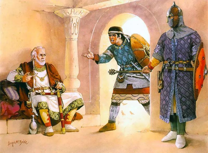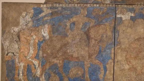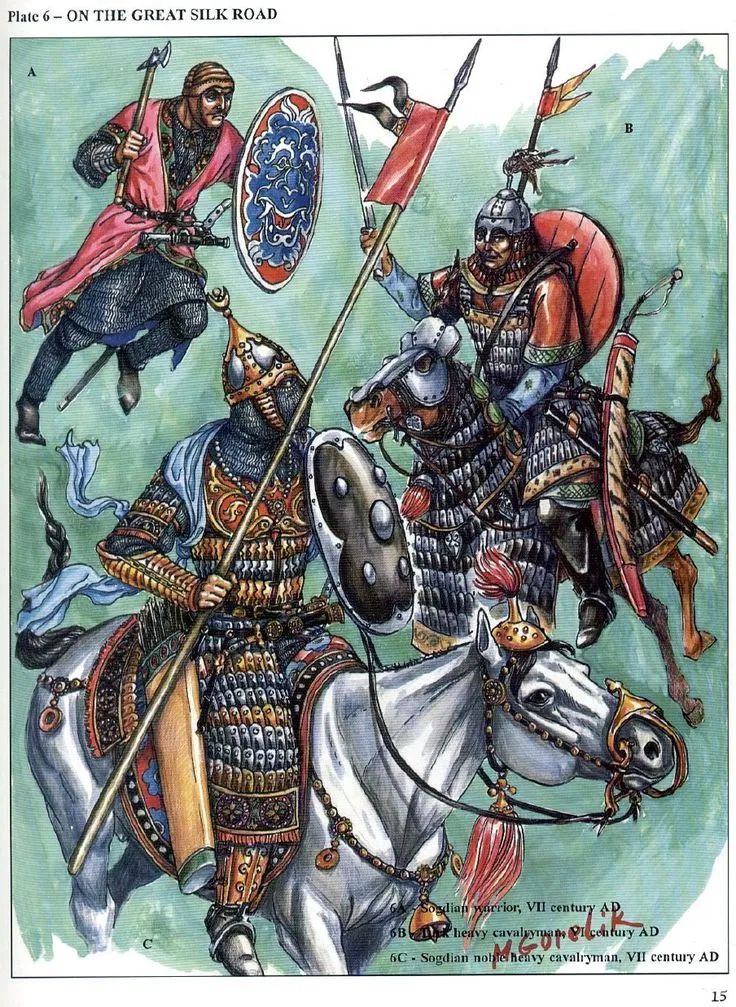壁画上的粟特骑士非常有趣的是,其中唯一的一份阿拉伯语文献涉及到一条苦肉计:国王迪瓦什梯奇为了迷惑阿拉伯人,表示愿意将前任国王的儿子送给对方当人质;与此同时,他又写了另一封信给撒马尔罕附近的一个小城领主,表示他得到了情报:有一支唐人和突厥的联军攻击阿拉伯人。因此,他要求当地的粟特人准备配合起义。