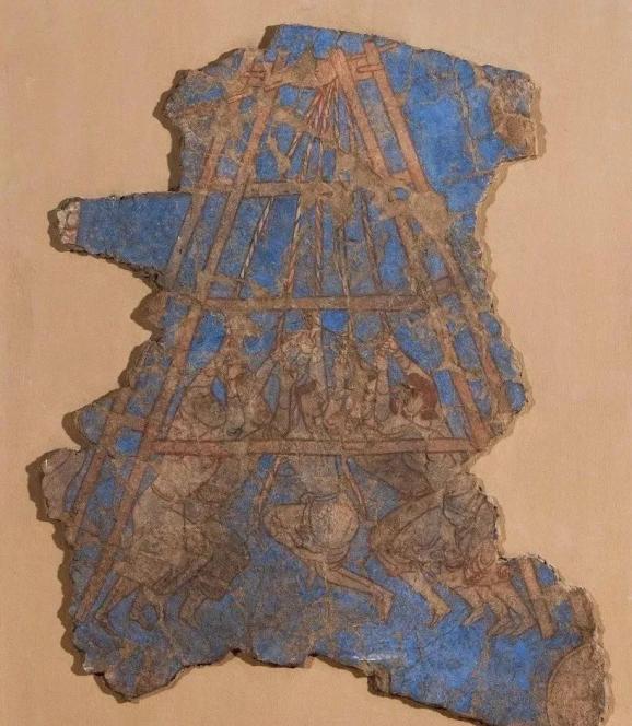 比如这件精致的银盘,就是粟特地区的涅斯托里派基督徒制作的,描绘的是耶利哥的陷落:妓女拉哈卜透过一扇门上方的窗户向外看,由此她让约书亚的间谍们进入了迦南城市耶利哥。在盘子中央,以色列人的约柜被高高举起,祭司们吹响号角。更远的地方,又一座迦南城被夺下。盘子的顶部装饰了太阳和月亮,依照约书亚的命令停滞在天上。而到了他祖父年老,他的父亲米突骑施成长起来的时代,阿拉伯军队再次将征服之剑指向了河中地区的粟特城邦,阿拉伯人通过挑拨离间加恩威并施,逐渐征服了各个粟特城邦,他们在712年围困了粟特诸国中最强大的撒马尔罕,直到城中居民同意投降并签署了和平协议为止才罢休,随后阿拉伯军队继续东征,在713年和714年到达了石国和拔汗那国。米国的王宫墙壁上,就有一幅壁画描绘的是阿拉伯人架设投石机攻击撒马尔罕的场面: