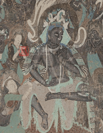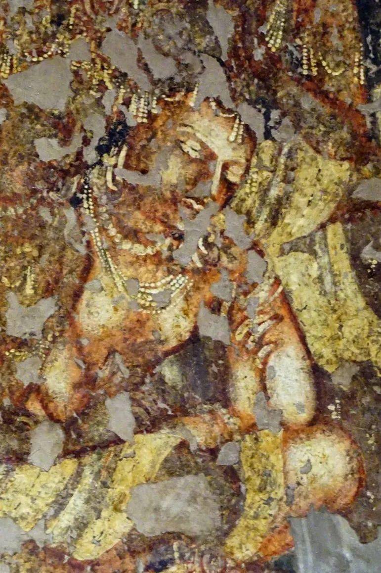 只可惜,由于颜料的氧化,我们今天看到的菩萨由黑色和灰褐色组成,不如阿旃陀壁画那样富有肉感。