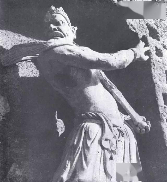 43号窟 前廊左端力士(麦积山石窟 名取洋之助著)