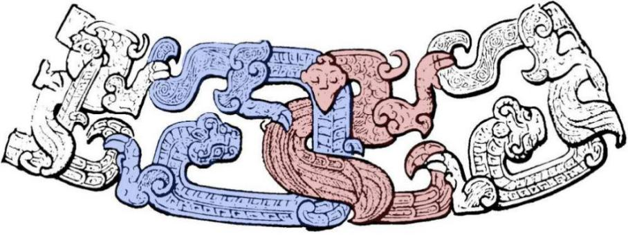 图6 鸟兽龙纹壶蟠龙和怪兽交缠纹饰