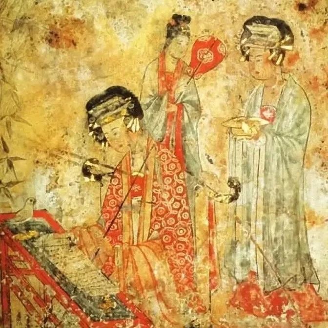 建国之初的辽墓壁画多沿用唐代绘画粉本,反映出一定的汉化因素。比如,1994年在赤峰市阿鲁科尔沁旗发现的宝山1号与2号辽墓,皆建于辽代初期,墓主为辽代皇室成员。这两座墓内壁都饰有彩绘,设色浓丽,画中的一些人物头饰及器用甚至以金箔装饰。