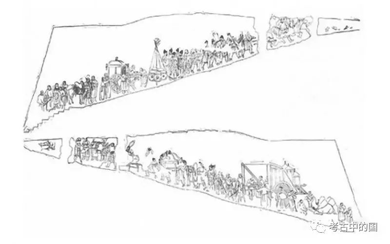 ▲ 内蒙古哲里木盟库仑旗1号墓 出行图与归来图线描
