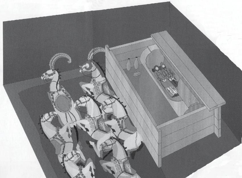 和那些后代声名显赫的霸权们相比,还有一些人,也就是后来所谓的安德罗诺沃文化的居民,带着战车技术翻过群山,向更早进入这里的吐火罗先民开战。在这些更生猛侵略者的引发的多米诺骨牌下,吐火罗人从阿尔泰山、天山南下塔里木盆地。这些人沿着盆地边沿前进,在盆地南部,他们经过且末等地,推进到了罗布泊附近,乃至更东之地。