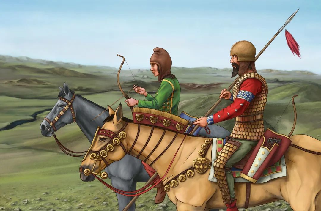 当然这一波迁徙路上也留下了一些分支部族,成为日后的分支故事线。比如一部分留在阿尔泰山南麓的吐火罗先民,接受了骑术在亚欧大陆内部扩散的技术成果,日益游牧化,成为了游牧的吐火罗人。至今族源存在争议的月氏人,也吸收了这一波技术,在战国时代,游牧到了敦煌-祁连之间,他们与吐火罗人有着非常密切的关系,乃至你中有我我中有你。日后月氏人因为新的战争,被分化为大月氏和小月氏。