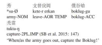 只要开出大军,就可以捉住仆谷刘曜。作者的主要复原依据,就是佛图澄的这句羯语诗歌,作者首先根据《说文解字》,复原了东汉和中世纪早期的这几个字的汉语发音音值,并根据文献记载中的断句,复原了这句话的完整读音: