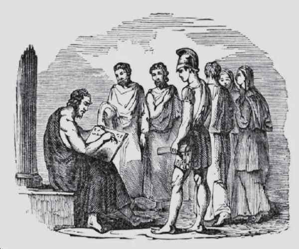 后来,雅典人开始反思自己长久以来没有成文法的问题。没有成文法,贵族作威作福压迫平民,不少人落草为寇,甚至刺杀贵族,一时间治安极为混乱。雅典司法官德拉古借机推出了一部法典,算是雅典史上第一部成文法。这部法律弊端实在太多。动辄使用死刑,甚至懒惰都是一条罪名。有人问德拉古为什么要如此残忍,他却答道:在我看来,轻罪理当处死。更重的罪,我实在找不出比死刑更严厉的了,只好也处死了。