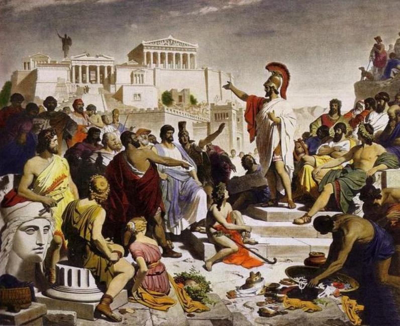 庇西特拉图写信给远在异乡的梭伦,请他回国为自己效力,被梭伦拒绝了。“是被一个人统治好呢,还是民主好呢?这个问题你想一下吧,庇西特拉图。”