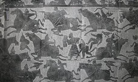 画像石上的水陆攻战图在出使西域的使者中,历经了早期的投机取巧阶段之后,除了类似于江充、冯奉世、傅介子等自愿出使的使者之外,还有一部分是被汉朝廷选拔或者地方官举荐的使者。这些人的特点往往是:如果是平民,往往有过人的武勇或者才干,能够担当大任,比如前106年,汉武帝就下诏“令州郡察吏民有茂材异者,可为将相及使绝国者”;而从有官吏身份中选出的使者,往往是武官,或者是属于郎中令体系的光禄勋属官,前者的特征是武艺高强,能够吃苦耐劳,能够应对突发的军事行动,乃至指挥军队作战,比如班超、郑吉、冯奉世等人,而后者则是“无常事,唯诏令所驱使”所以有利于接受临时的征发调度,为国效力。