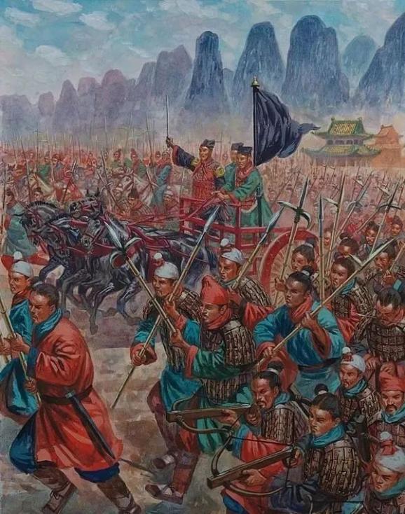 放眼《国殇》所对应的公元前3-2世纪,就会发现《国殇》只是一个小概率个例------随着全民战争的战国时代的到来,军事人员的专业程度、军队的规模,军队的作战半径和战前规划都今非昔比,军队阵型更加灵活机动,单次战争可能会将地图最南到最北,乃至非诸夏世界的势力卷入其中,所以《诗经》和《左传》时代个人勇士的武勇,特定阶层和特殊族群贡献的特殊兵种,对战局胜败的影响整体下降,国君和高级贵族亲自冲锋陷阵的古老传统也几乎消失,所以,看��葛之战、鄢陵之战、城濮之战、艾陵之战、越灭吴之战等早期战役,还能看到由国君和大贵族坐阵左中右军的部署情况,到了战国时代,类似的记载则逐渐没有。