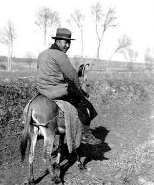 1930 年,山东城子崖龙山遗址,李济先生骑驴漫游(中研院史语所藏)