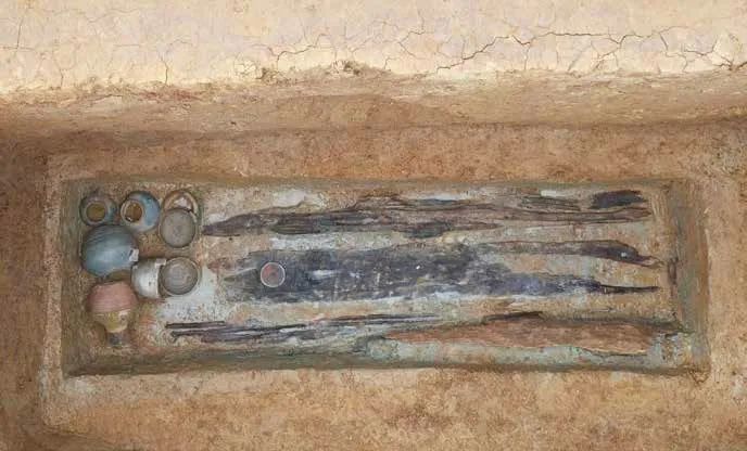 通过对发掘墓葬的分期分型以及出土随葬品研究,早期墓葬所对应的时代为西汉早期高祖文景时期(约公元前206—前154 年)。多座男性墓葬中有官印及兵器出土,指示与庙山王陵关系密切,推测为吴王刘濞时期吴国的中下级武官。中期以后约汉武帝时期开始,由于庙山王陵区的废弃,该区域转变成汉广陵国的平民丛葬区,这从墓葬的朝向及出土随葬品的平民化中得以反映。