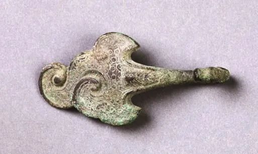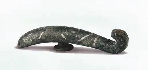 前者流行于春秋时代至南北朝时,器形以钩钮连体为特征,作微屈的长条形或琵琶形,一端曲首,钩身背面有圆钮。钩首大多作成各种动物形。钩身饰云纹、涡纹等。有的错金银,有的贴金,有的镶嵌绿松石。长短大小不一,大的长近半米,小的仅 2 厘米。一般 10 厘米左右。后者钩体饰动物纹,钩背有钮柱而无钮,钩首弯向钩背与钮柱同在一侧。