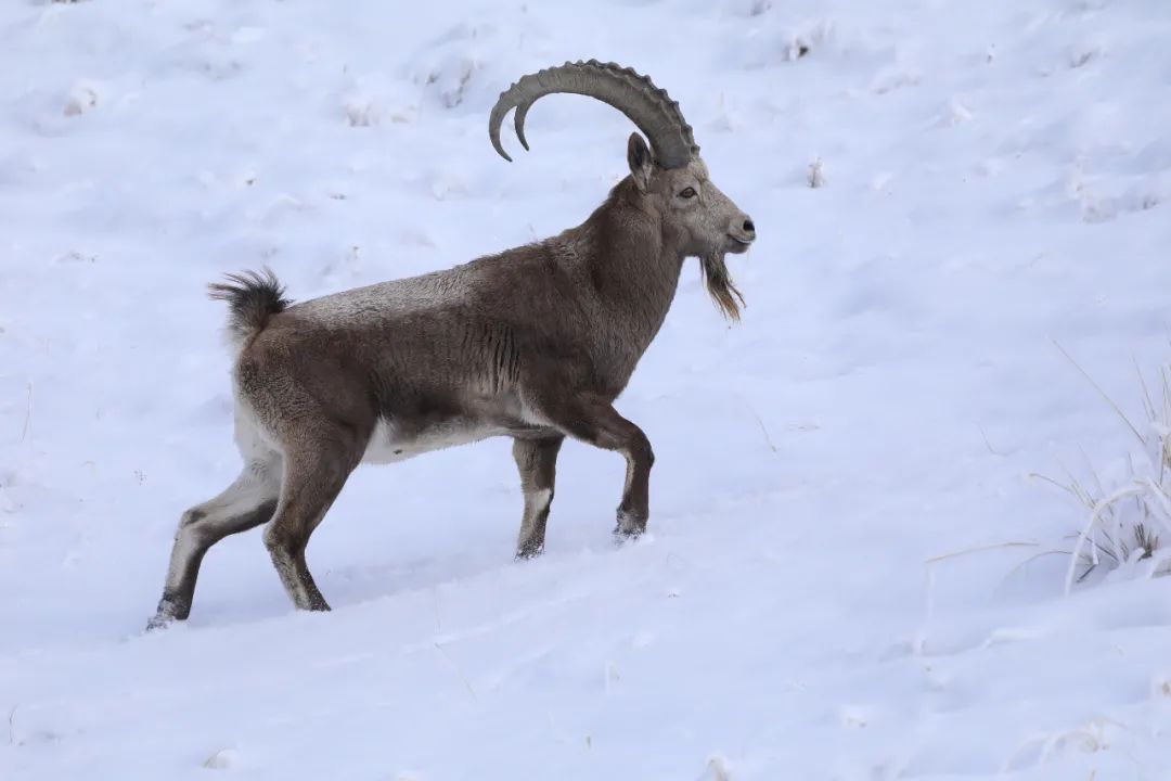 冰川之上有无数水深莫测的冰面湖、数百米深的冰裂缝,还有浅蓝色的冰融洞、冰钟乳、水晶墙、冰塔、冰椎、冰蘑菇、冰桌和冰下河等冰川奇境。同时,天山还堆积了大量古代冰川沉积物,并保留了多种冰川侵蚀地形——古冰斗、冰槽谷、冰坎等。这些奇特的冰川遗迹,是天山经历千万年时间的见证,也是大自然日月轮换留下来的不可替代的遗产。中国境内的天山冰川数量有18311条,,冰储量2600立方千米。这些茫茫多的冰川融化出的水,汇集成370余条河流,滋养着南疆和北疆干涸的土地,这其中就包括中国最大的内流河——塔里木河。新疆有一半以上的水资源,都源于天山。200万年前,天山在经历了持续1000万年的造山运动后形成,千百万年的时间,在天山留下了大量的痕迹证据,成为了珍贵的自然遗迹。△天山神秘大峡谷,地质运动造就的奇迹之一。图/视觉中国天山东段,一段陡峭、险峻的山峰横空出世,当年,成吉思汗的子孙们来到这里,被它的雄伟壮观所折服,他们给这座山峰起了个名字叫“博格达”,蒙古语的意思是“神灵”。而在博格达峰的的半山腰,有一个由侏罗纪砂岩、油页岩和烧变岩等组成的地貌奇异壮观的河谷——三工河谷。三工河谷留下的远古痕迹,揭露了天山遥远的历史岁月。河谷的岩石中含有从第三纪至石炭纪各地质年代的化石,代表着沧桑巨变的地质演化变迁和生物进化历程。△三工河上游的天山天池,也是天山的奇景之一。图/视觉中国同样在天山东段的哈密地区,存有大量的翼龙化石。这一翼龙化石分布区不但是世界上已知最大和最富集的翼龙化石产地,也是目前世界上唯一一处保存的翼龙蛋遗址、雌雄翼龙个体共生化石遗址。这一化石遗址的发现揭露了距今一亿多年前的早白垩纪,湖泊中的大型风暴导致的大型翼龙群体毁灭性死亡事件。国际古生物学界认为这一发现是:“翼龙研究200年来最令人激动的发现之一”。△2017年11月30日,新疆哈密,戈壁上的翼龙化石。冰川、烧变岩、古生物化石、古火山弧、峡谷与瀑布等等等等,天山留下的自然遗迹数不胜数,又独特而绝美。拥有了自然景观最独特,自然遗产最精华的天山,它的生物多样性如何?一句话来形容的话就是:珍稀生物最后的天堂。天山共有野生动植物3000余种,各类珍稀濒危动植物近500种。其中的代表动物物种“雪山之王”雪豹,被中国物种红色名录评估为极危,在中国的数量甚至少于大熊猫,是极其珍稀的旗舰种。直到2005年,科学家才在天山发现有雪豹存在,这个神奇的物种在这片隐秘的山林中繁衍生息。△雪豹,直到20世纪70年代才进入人类的视野。摄影/李应平