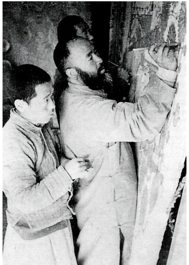 张大千率弟子在敦煌临摹壁画,1941-43年