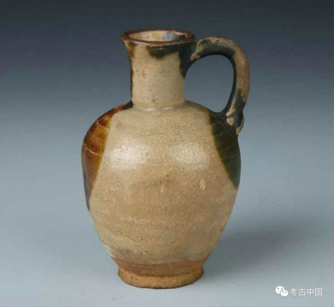 ▲ 唐代 邛窑青釉褐绿彩带柄瓷壶(重庆博物馆藏)