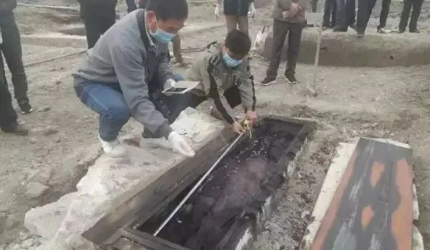 泰州地区明代浇浆墓多埋于高地,相对高度较高,绝对高度并不高,距离地表在一米左右,浇浆墓基本上位于地下水位之上。浇浆墓有很好的密封作用,地表水不容易进入棺木之中。熟石灰即氢氧化钙,属于碱性物质,地表水经过浇浆的过滤,即便进入到棺内也成为弱碱性的水。在弱碱环境下,纺织品的丝蛋白和棉织品纤维的化学稳定性较高,这种环境下常常能够较好的保存古尸和陪葬的纺织品,这是泰州地区经常出土明代古尸和纺织品的一个重要因素。