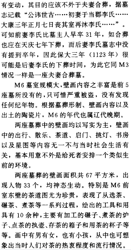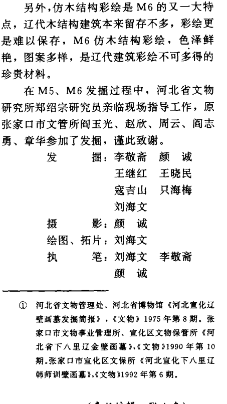 摘要: 河北宣化辽代壁画墓(下)张家口市宣化区文物保管所原载《文物》1995年第2期,原文较长分3次推送 二 M6 1.墓葬形制 M6位于张世卿墓东南71.5米处,地表无封土标记,由墓道、墓门、前室、甬道和后室组成,墓室内部全长6.75米,方向203°(图四四)。 墓道土坑式,未做清理。 墓门拱形,拱门外是仿木结构的门楼,高3.6、现存宽度2.25米,右侧 ...