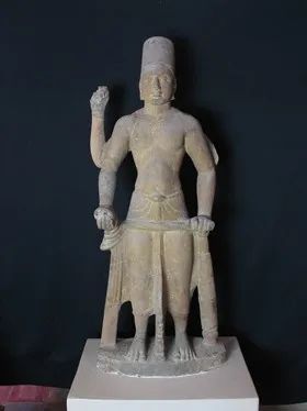 石雕毗湿奴立像,前吴哥时期,公元550-600年,属于三波坡雷古古迹早期风格