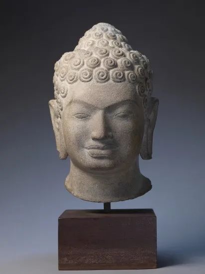 石雕佛头,前吴哥时期,7世纪。这件佛像主要是从中国人称之为“扶南” 的波雷遗址中发现的