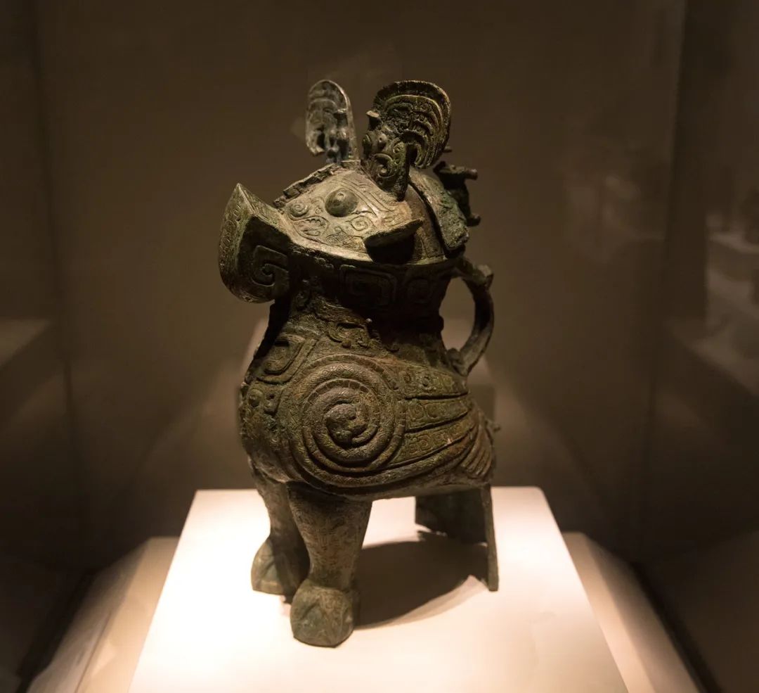 《礼记·表记》曰:“殷人尊神,率民以事神,先鬼而后礼。”殷商时期,宗教的政治地位极高,商王对上天的意志有着绝对信仰,事事都要征得“神”的旨意,那成千上万的甲骨卜辞便是这种宗教观念的载体。除了占卜,祭祀是商代政治生活的另一重要事务。商朝设有专门的巫职机构,负责国家神事。妇好,也是巫师之一。她经常受命主持祭天、祭祖、祭神等各类祭典。商代之巫常常可以借用天神之意,对国内政事起着直接或间接的支配作用。她这一身份,跟她的军事将领身份相辅相成。“尊”便是礼器之一。尊盛行于商周时期,是一种盛酒器。“尊”字的甲骨文写法——双手捧酒器奉上的动作,会意表“尊敬”“尊卑”之意。尊在礼器中地位极高,《周礼》谈六尊:“牺尊、象尊、著尊、壶尊、太尊、山尊,以待祭祀宾客之礼。”可见,各式各样的的尊主要用于祭祀,或奉与宾客。“妇好”二字,静静地铭刻在鸮尊内器壁上,表明这件器物为纪念妇好而作。作为礼器,尊次于食器鼎。但尽管妇好墓内也有鼎器出土,却不及这跨越了三千年仍栩栩如生的鸮尊更能让人领略这位女将领的风姿。这昂首挺立、炯炯有神的妇好鸮尊,出土后一直在向我们叙述那段“国之大事,在祀与戎”的殷商记忆。然而,不久后,殷商时代的辉煌,将在酒池肉林的商纣王手上落幕。