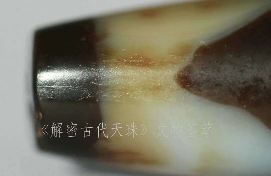那么,在被埋藏了2000多年后,“虎牙”天珠的珠体上到底产生了怎样的老化现象?