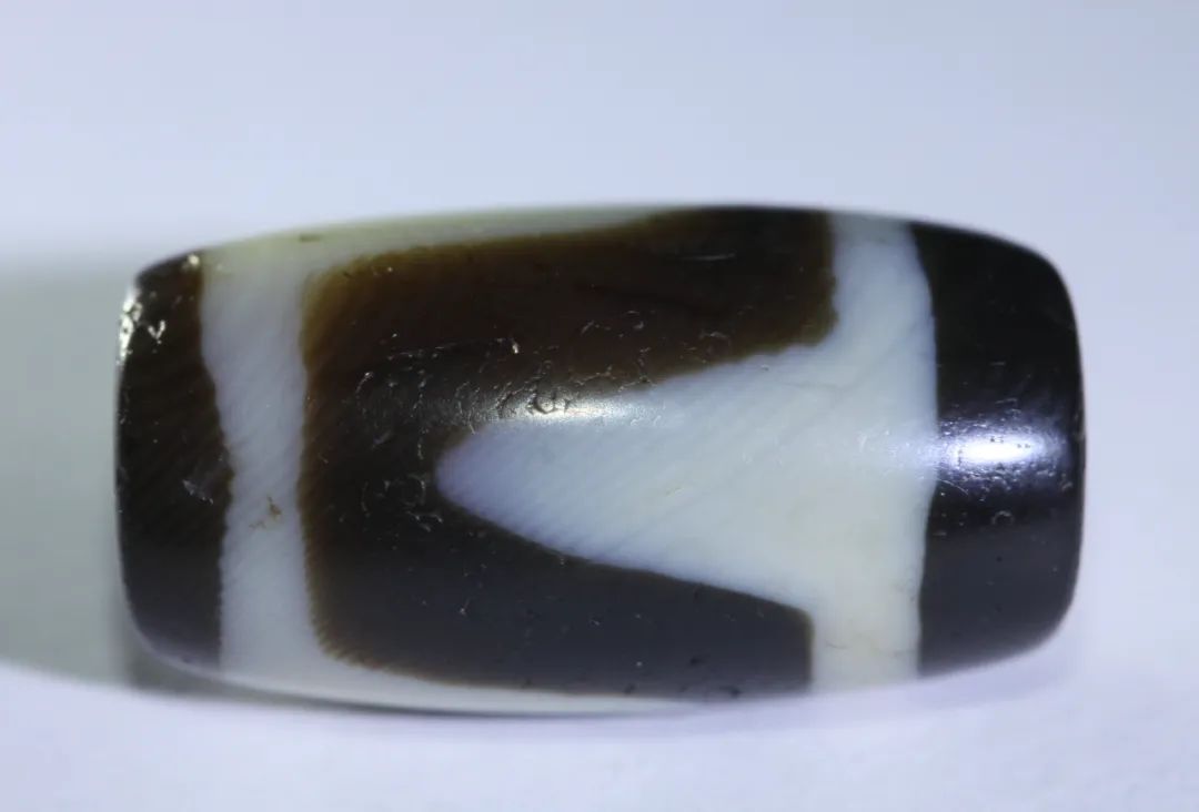 那么,这颗天珠上的白色“三角形”和黑色“之”字形纹饰究竟蕴含着怎样的文化寓意呢?