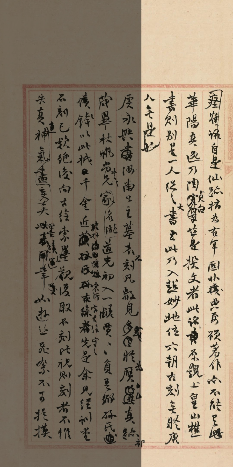 如:要知当日太宗重“二王”,群臣戴太宗,橅勒之事,成于迎合,遂令数百年书家尊为祖者,先失却本来面目,而后人千万眼孔,竟受此一片尘沙所眯,甚足惜也。“此论实千载万世莫敢出口者,姑妄言之”。