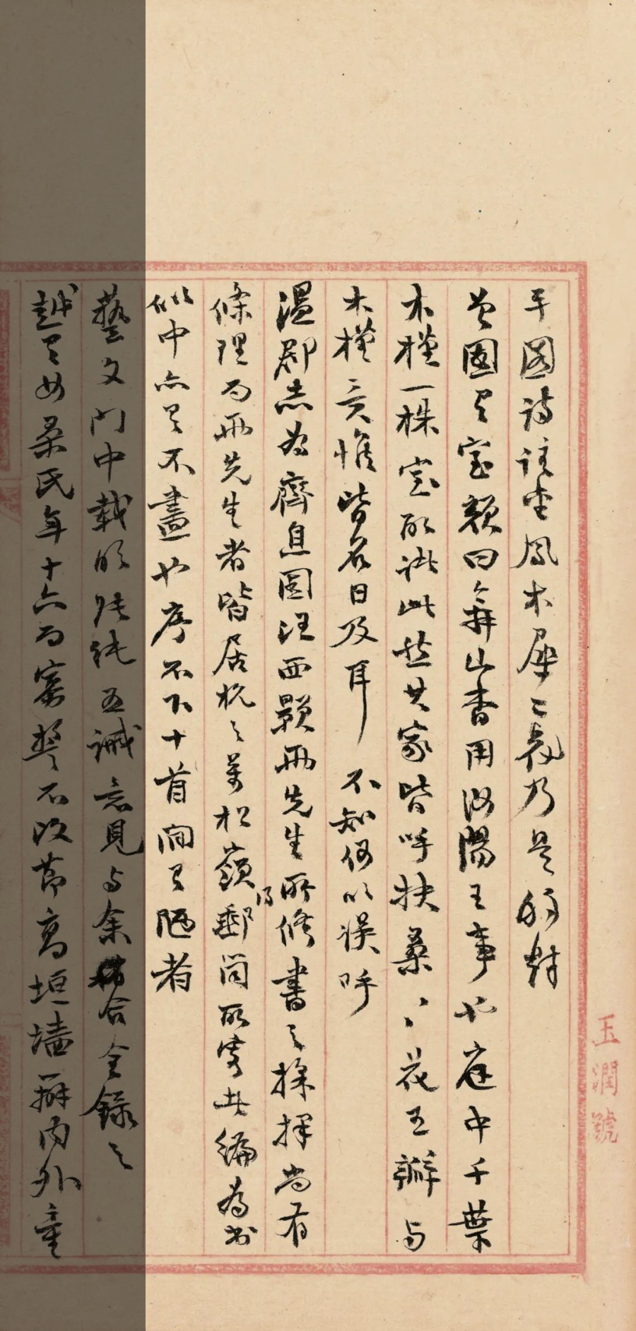 [ 第一通 ] 书学祖晋人,晋人书祖“二王”。“二王”之书,传者皆经唐人摹勒,实不及《绛州》。今人即据唐人摹勒者称“二王”,“二王”书果如此乎?据后世传写数过之本而力信古初,反不如取每科状元策学之,尚是真面目也。注一:自“实不及”至“尚是真面目也”,原稿拟删去,似又可存,故依稿本录出,可识作者当时之心迹。