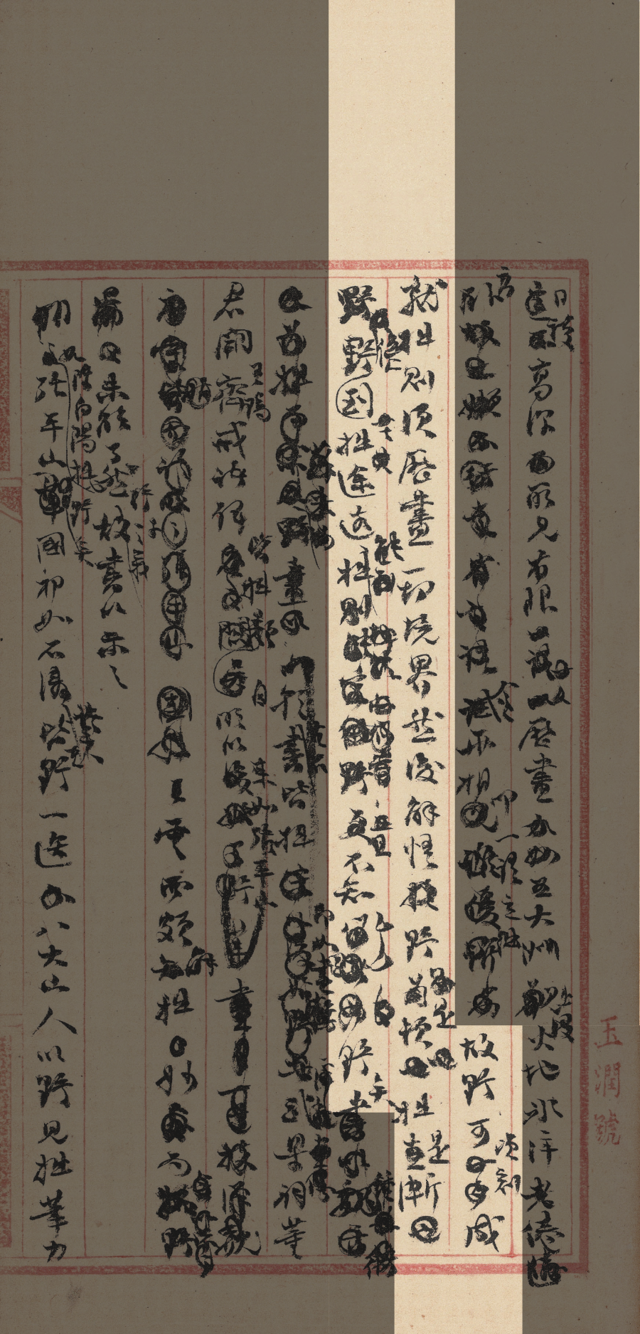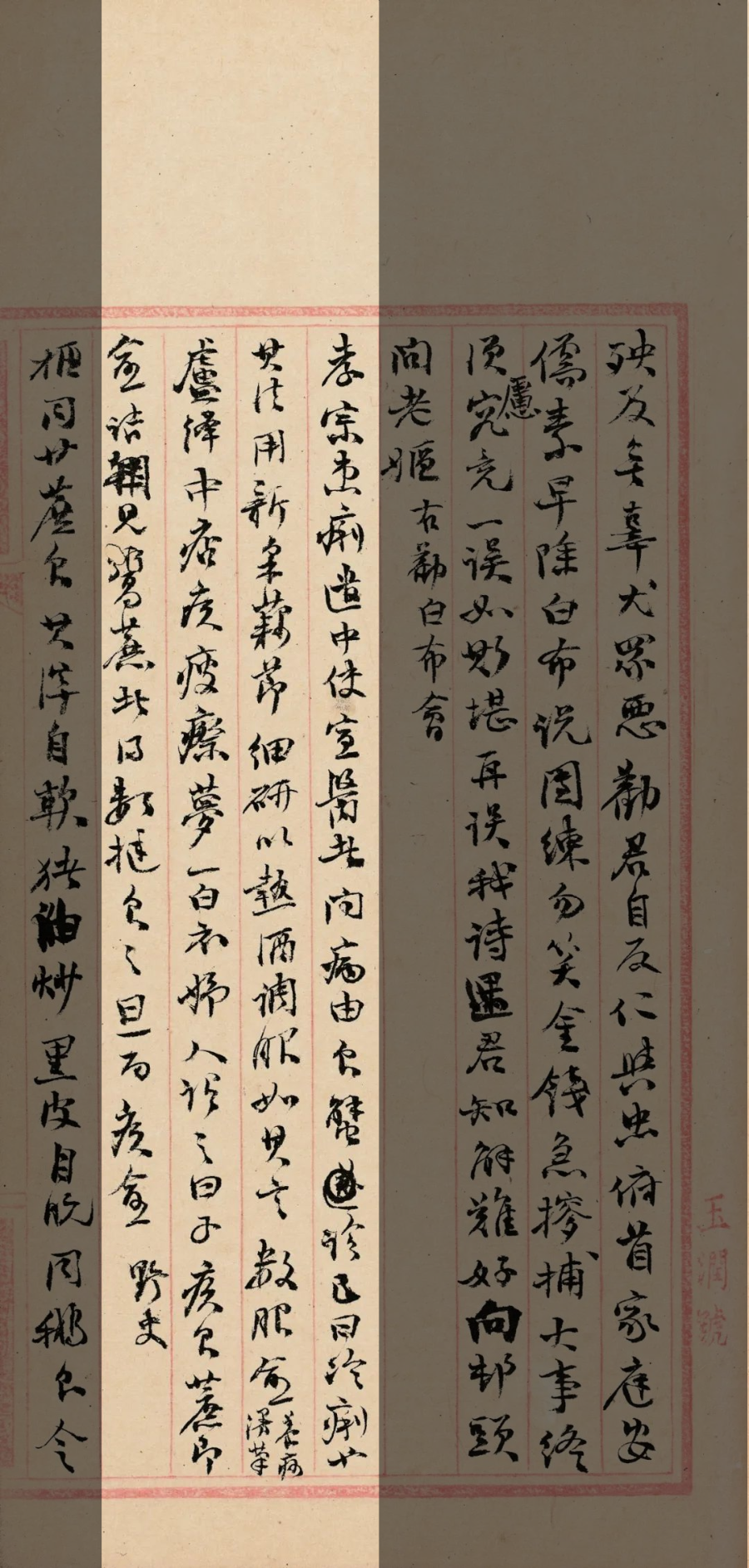 [ 第十二通 ] 二十岁前,学《家庙碑》五百字,无所得。遍求古帖,皆涉一过,亦不得。后见山谷大字真迹止十余,若有所悟。偶作大字,笔势顿异,觉从前俗骨渐磨渐去。