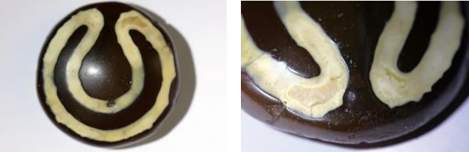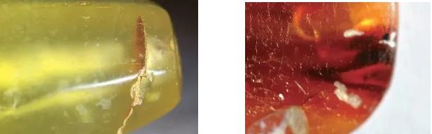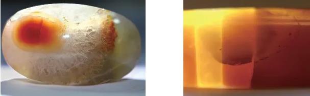 左:观察珠体上的沁像及临近孔口的孔道特征