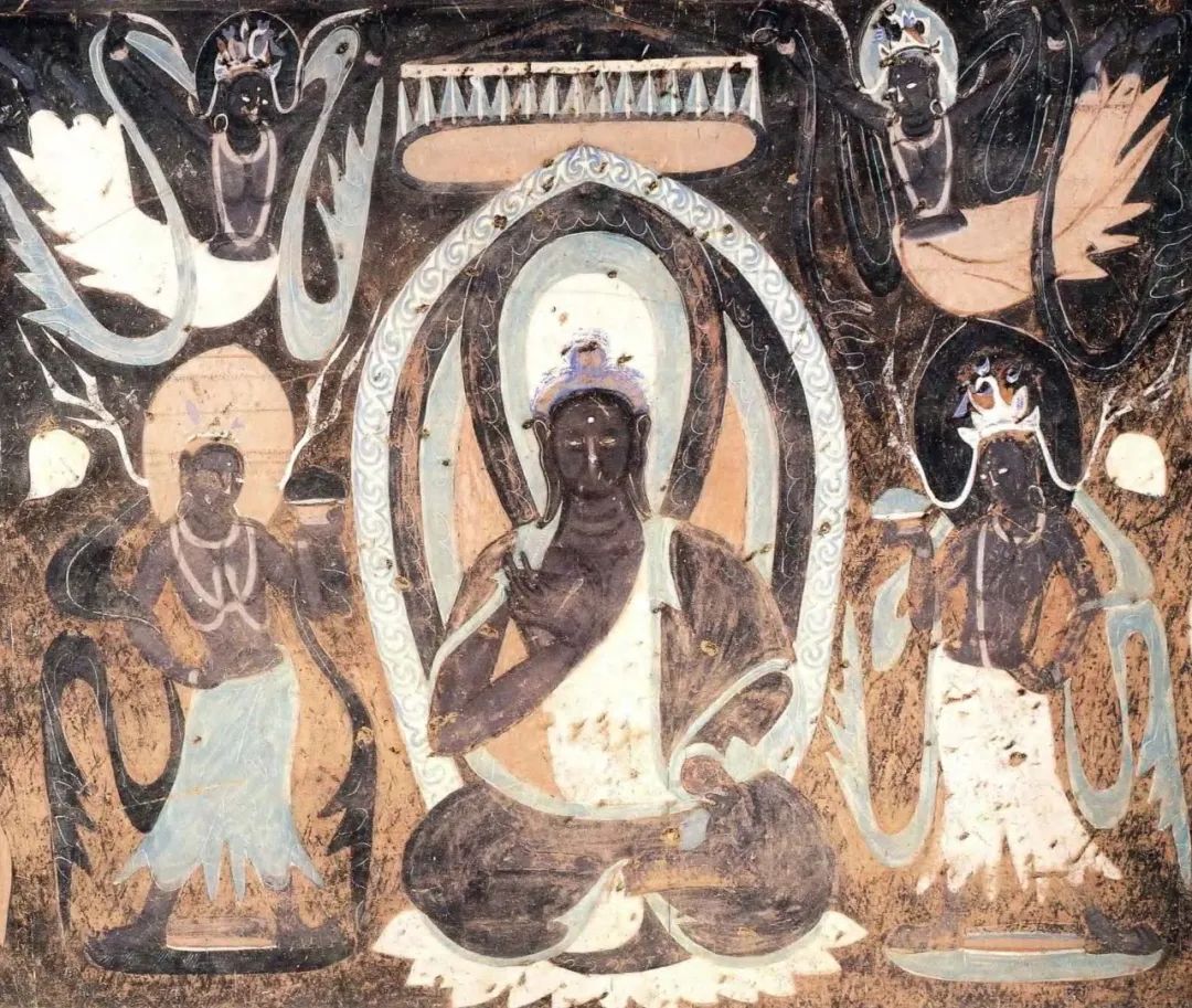 于是我总是想知道在没有褪色前,晕染法的效果又是怎样的呢。敦煌251窟壁画说法图