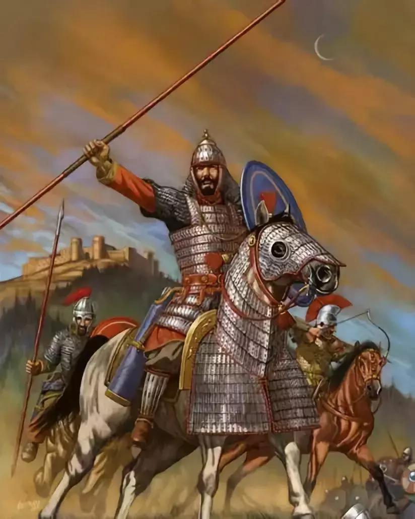 到了步兵地位与素质一落千丈的年代,帝国军队就不得不一次次面对拥有更强骑兵的波斯人、哥特人和匈人。这些对手的骑兵,无论水平如何,都有过在战场上扭转乾坤的出色表现。同时,也因为他们的装备、战法和骑术本身皆源自乌克兰大平原至中亚腹地之间的东方。自然也就让新建立的罗马骑兵,有着浓郁的东方特色。
