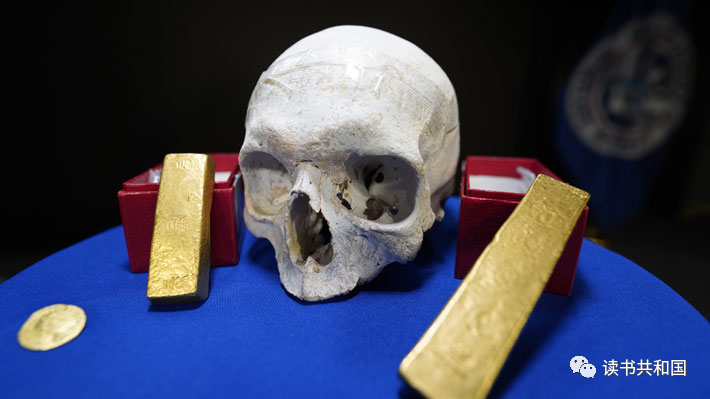 有关上述文物的研究表明,这些金锭是从沉没的孔蒂王子号(Prince de Conty)盗掘来的。1746年,孔蒂王子号从中国返航时在布雷顿海岸附近沉没。在加利福尼亚州的一次拍卖中,这些金锭重新面世。这枚头骨则来自巴黎的偏室墓,是从德克萨斯州的一个古董商那里找到的。这枚金币,连同其他一些物品,1985年出土于科西嘉熔岩湾(Corsica’s Gulf of Lava)附近的一处较大的古罗马窖藏,未经官方许可就售出了。对此,艾蒂安说:“文化遗产的盗窃和贩卖是绝不可接受的,这是美国和法国两方的共识之一。”