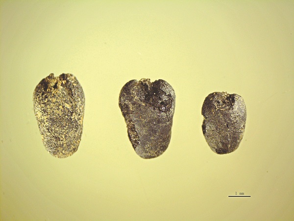 粟与小麦的炭化颗粒 图片来自作者