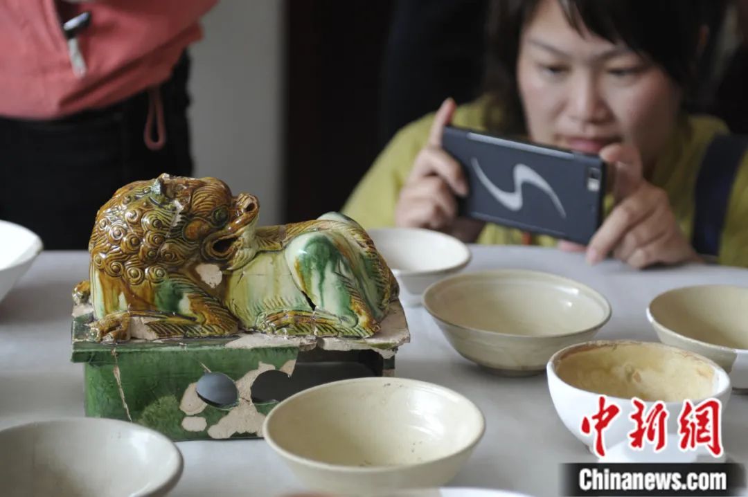 晋阳古城遗址出土的三彩狮子。中新社记者 韦亮 摄