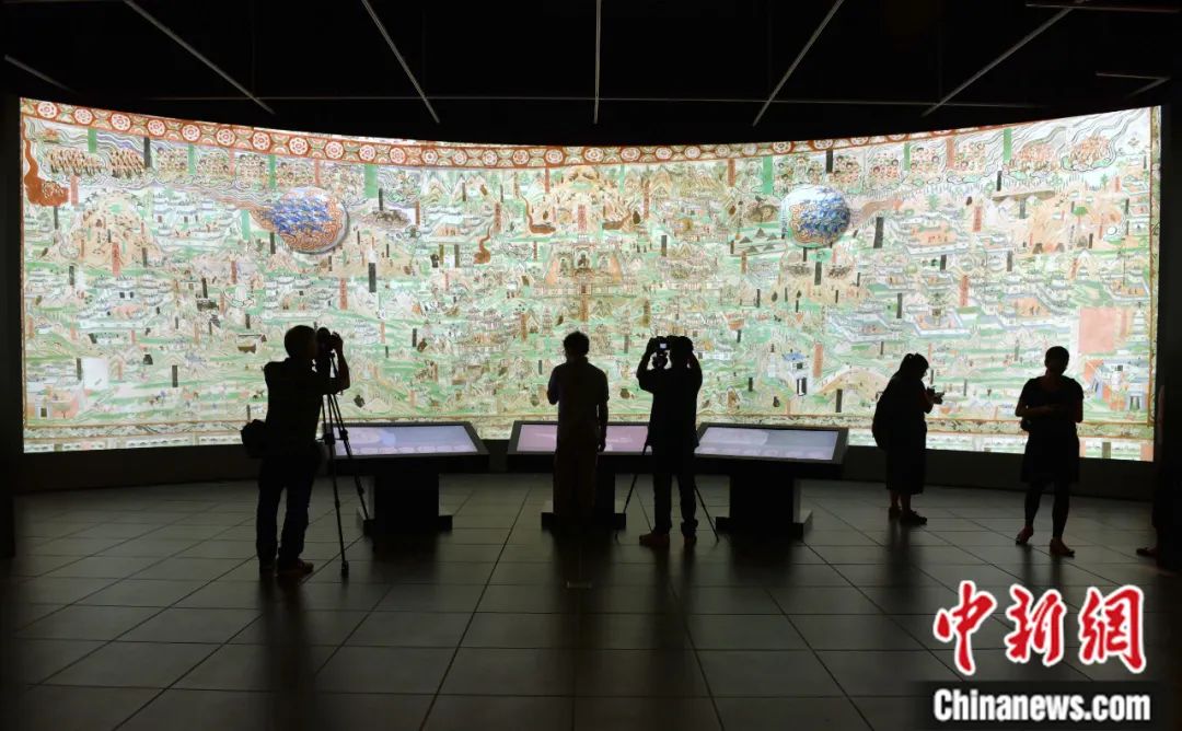 莫高窟第61窟《五台山图》复原图在香港文化博物馆展出。中新社记者 张炜 摄
