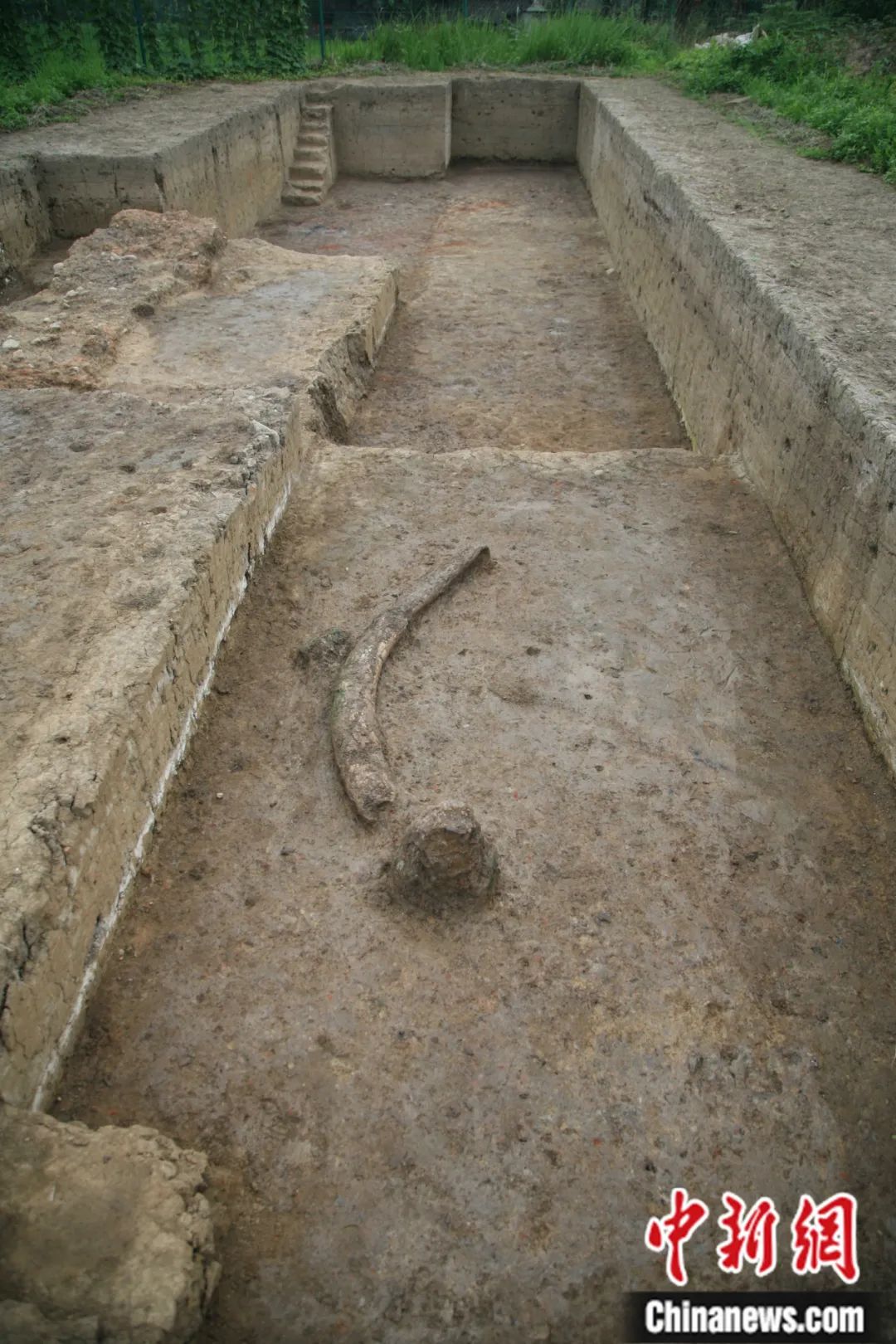 三星堆遗址青关山F3夯土面上发现的象牙。中新社发 钟欣 摄