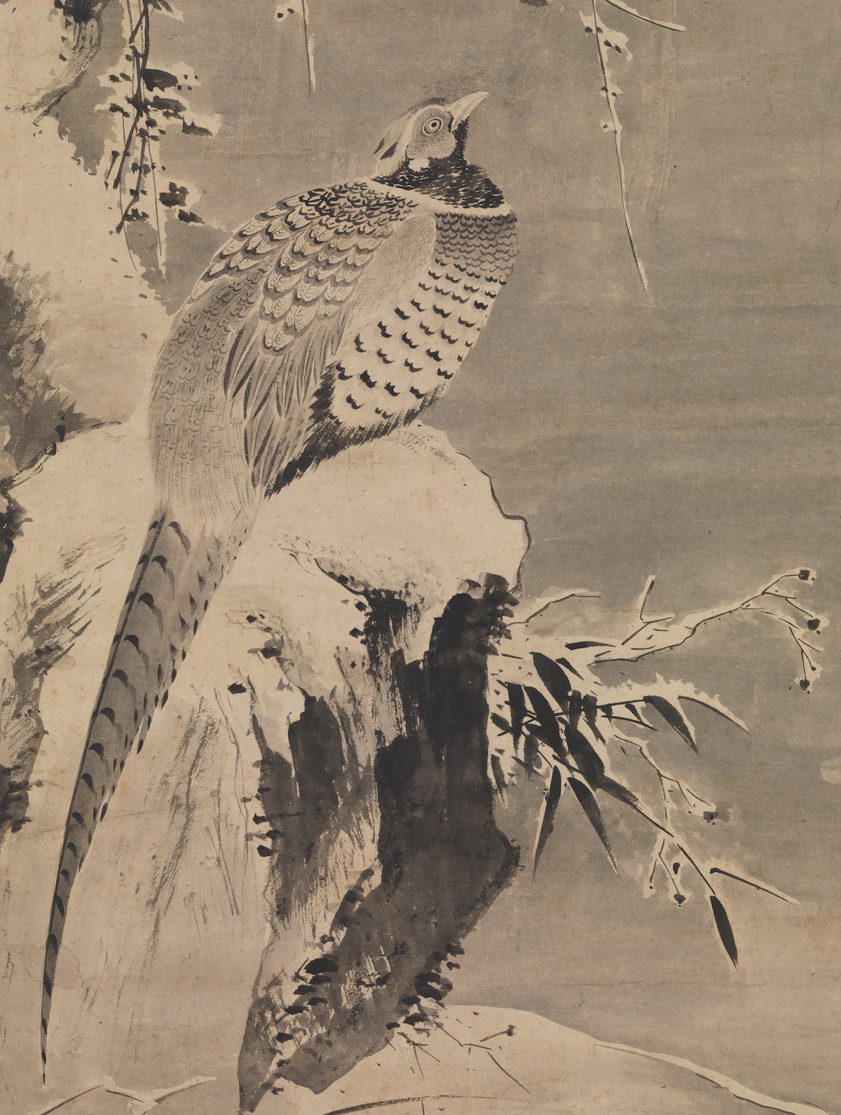明 吕纪 寒雪山鸡图 轴(局部) 台北故宫博物院藏