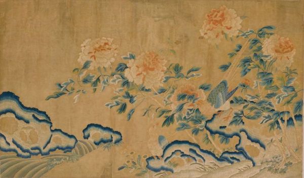 清 刺绣牡丹锦鸡图 轴 故宫博物院藏