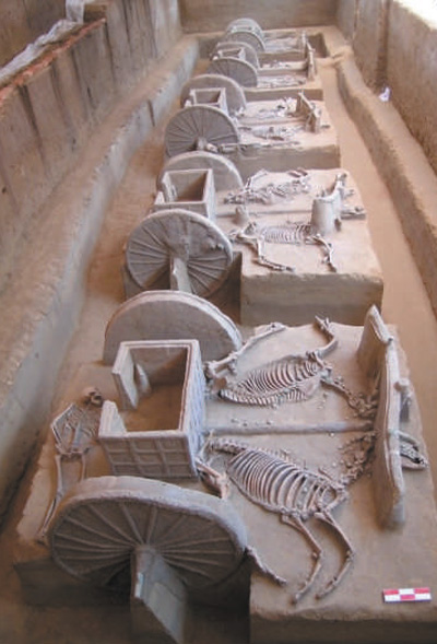 2005年在安钢第二炼钢厂西南发掘的有5辆车马的车马坑。图片来自岳占伟
