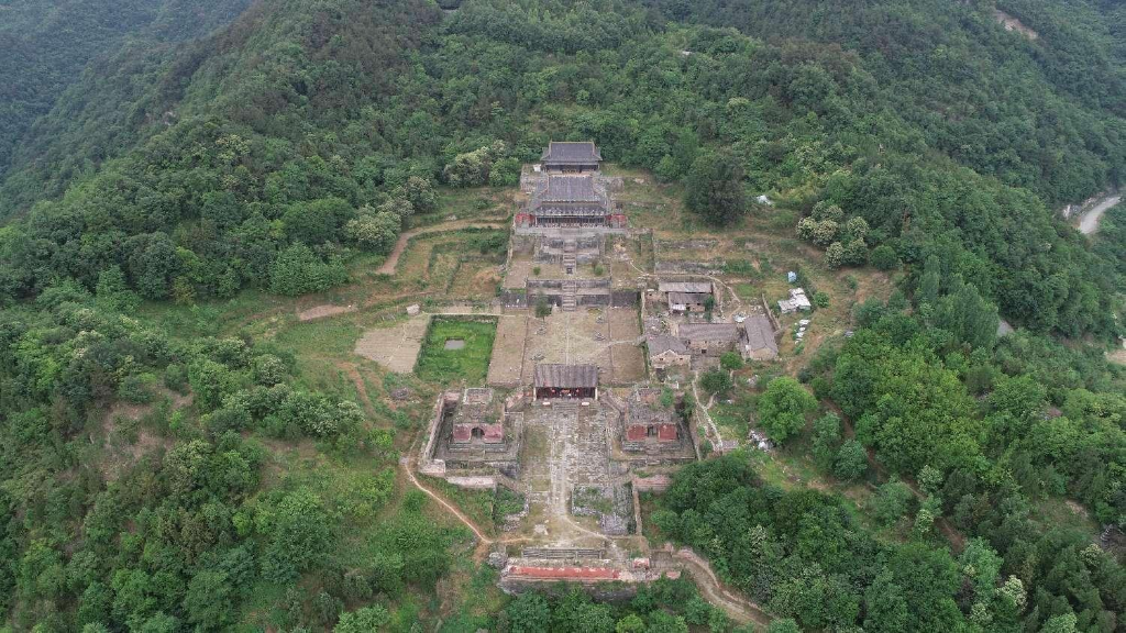 五龙宫遗址远景航拍(东—西)。(图片来自湖北省文物考古研究院)