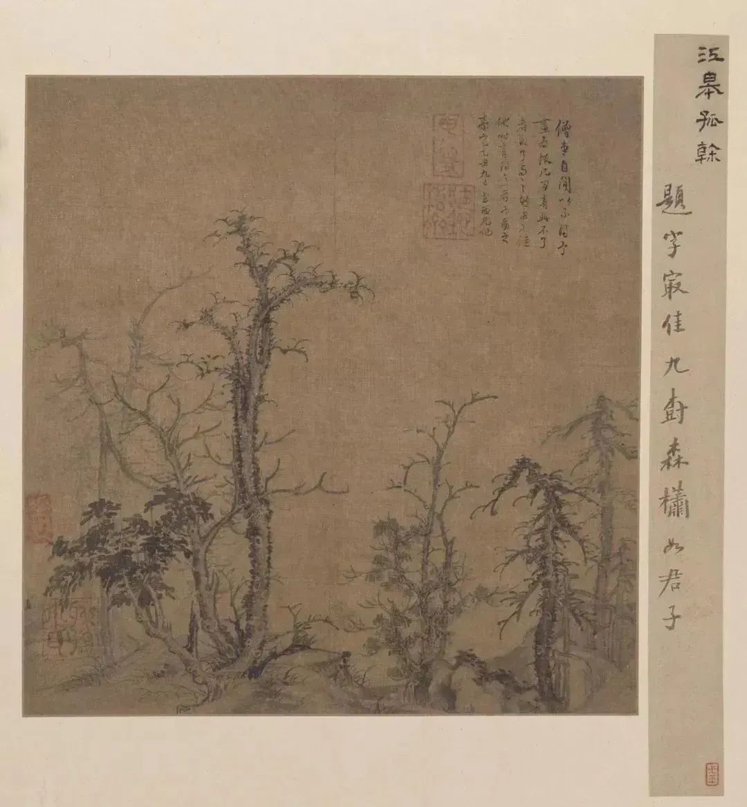 现收藏于故宫博物院,作于泰定二年(1325),曹知白时年五十四岁,为目前发现年代最早的曹知白传世真迹。这幅画的题材为典型的秋冬季寒林景象,充满萧疏苍茫之气,干枯的树枝采用“蟹爪形”画法,可窥见作者早期倾传李郭一脉的画风。