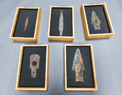 江口明末战场遗址发现的青铜兵器。新华社记者 王 曦摄