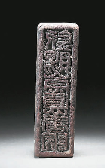 “钦赐崇德书院”铜印,表面鎏金,长方形印台,龟形印钮,印面篆书“钦赐崇德书院”6字。“崇德书院”为明代吉王所建,是王府内讲学、刻书的重要场所。吉府“崇德书院”本图书,无论校勘、版刻、用纸皆为当时翘楚,亦为后世所重,历来被视为珍本。这枚吉府书院印的发现,对研究明代文化教育,是非常珍贵的实物史料。