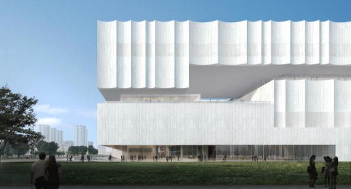 上博东馆外立面的设计,曲线象征海洋,平整象征陆地,体现“海陆交汇”的概念