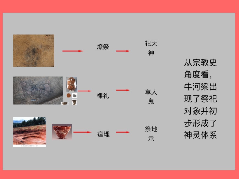 从宗教发展来看,有3万至1万年前的旧石器晚期的原始宗教、公元前4000至公元前2000年前的由原始宗教演化而来的古代宗教和世界宗教、历史宗教几个发展阶段。红山的信仰体系,正处于5500年前的古代宗教阶段。