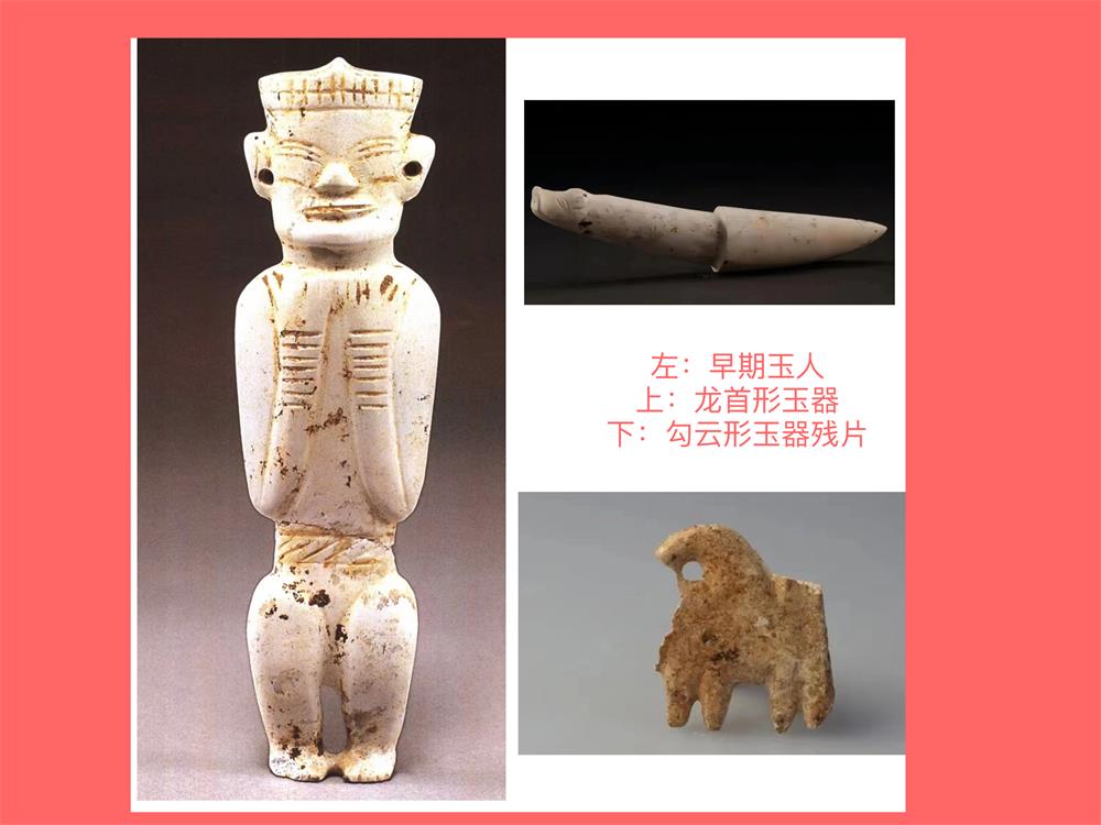 红山玉器与凌家滩早期发现的玉人,最新发现龙首形玉器,还有勾云形玉器残片高度相似。丁燕提供