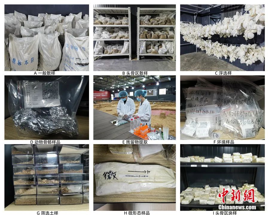 因头骨化石周围的土壤、化石等物质中保留有大量珍贵的科学信息,考古人员围绕头骨化石周围4平方米范围,采取1400多份样品。除满足现阶段科研外,还为后面可能的科研活动预留足够空间和样品。