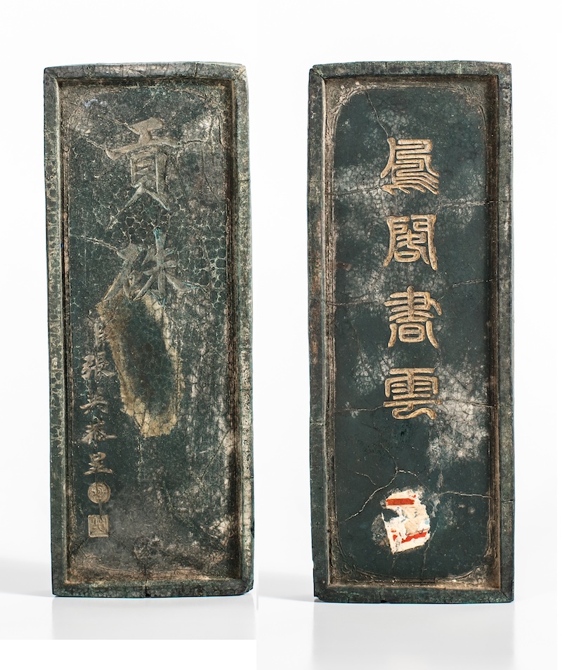 汉字“墨”是个会意兼形声字,其从土,从黑,表示墨是用黑土制成,用以书画的墨色颜料,因此长期来人们很自然地认为墨就是黑色的。查阅字典可知,“墨”的字义,除专指黑色颜料外,还被引申为书画所用其它颜料。我国古代名墨坊都曾生产制作彩色墨,以提供特殊书写和绘画的需求,如清康乾年间曹素功墨庄每年进呈的贡墨中就有很大比例的朱砂墨,供皇帝朱批和朝廷官府所用,还有不少用御制墨、贡墨模具制的彩色墨,都是墨中极品。